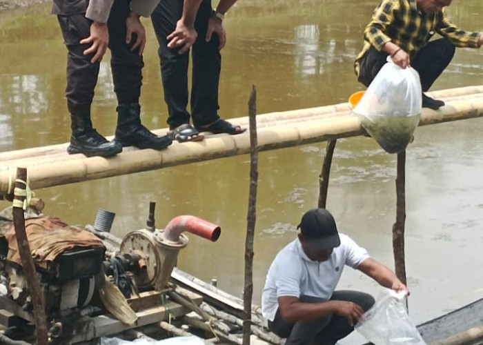 Polsek Pemulutan Tebar 20 Ribu Benih Ikan di Desa Arisan Jaya Ogan Ilir