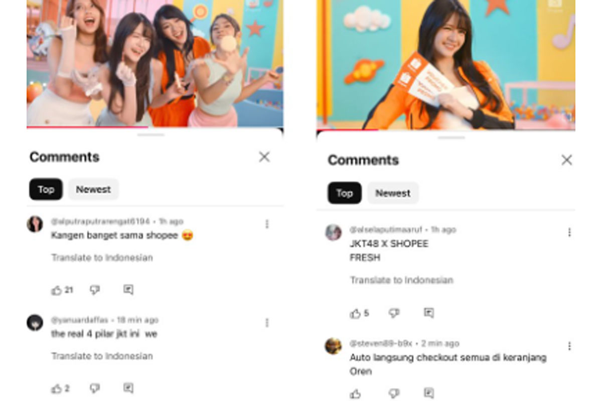 Tak sedikit pula yang mengungkapkan bahwa mereka sangat suka iklan terbaru Shopee dan JKT48 karena visual dan energinya yang menyenangkan. Bahkan saking serunya, para member JKT48 juga membagikan ulang cuplikan MV tersebut di media sosial pribadi mereka, menunjukkan antusiasme dan kebanggaan terhadap kolaborasi ini.