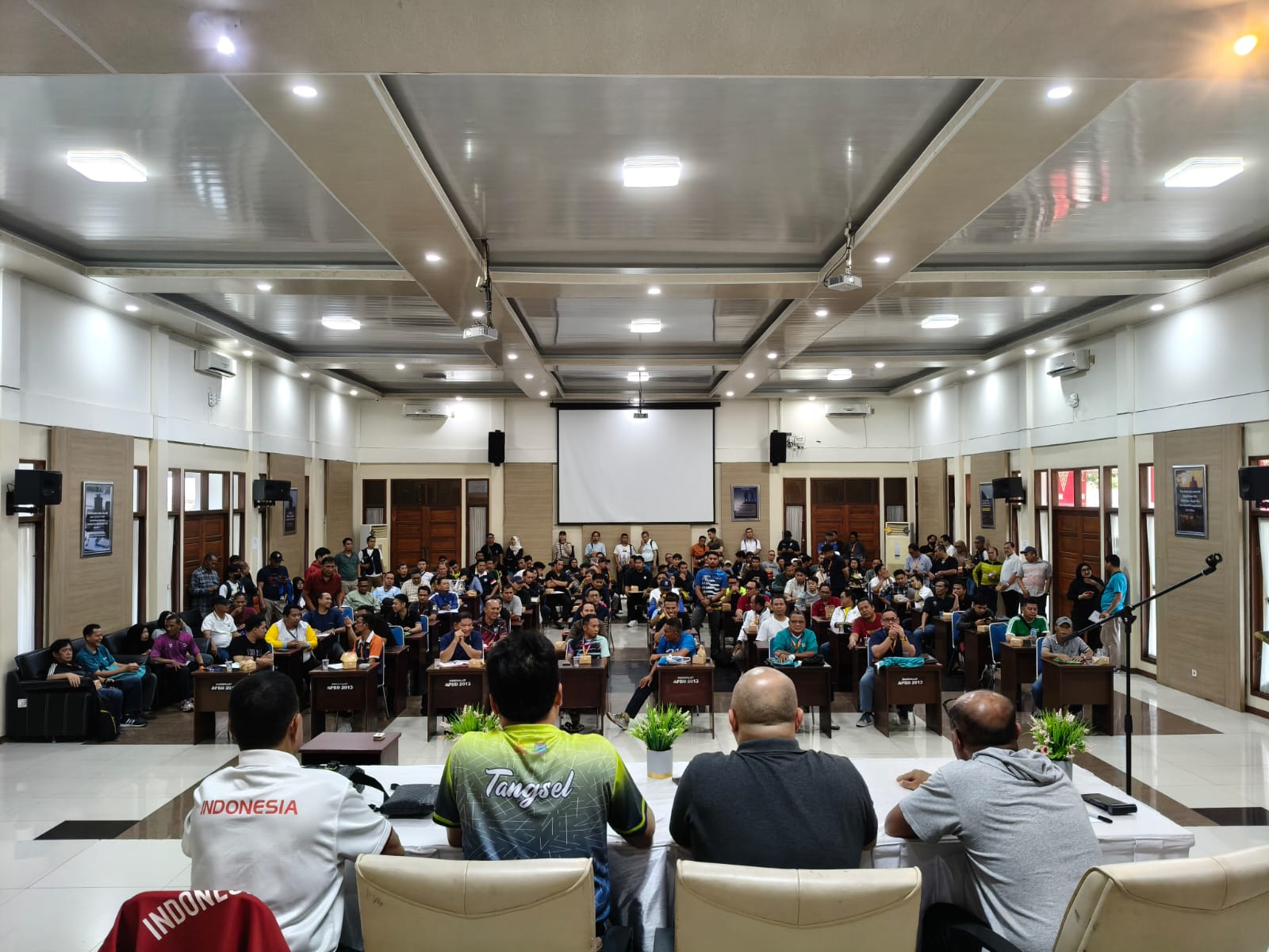 Technical meeting cabor tenis meja Pornas Korpri Sumsel 2025 di aula BPSDM Sumsel. Foto: oganilir co/Dendi Romi--
