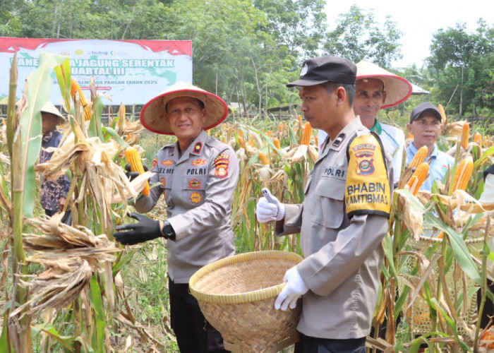 Program Ketahanan Pangan Polsek Rantau Alai Panen Jagung di Desa Sukananti Lama