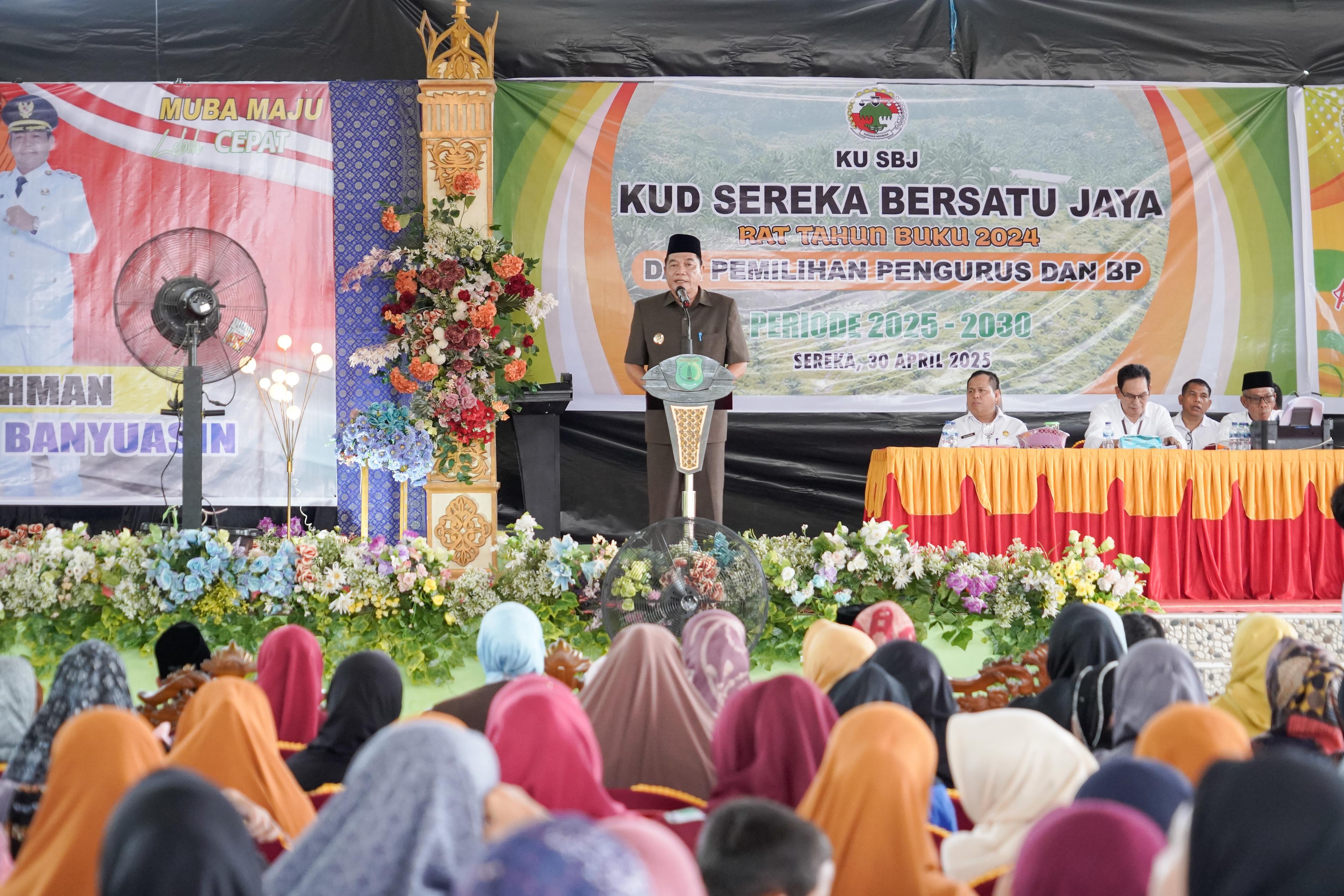 BABAT TOMAN, oganilir.co - Bupati Musi Banyuasin (Muba) HM Toha SH didampingi Wakil Bupati Muba Rohman, secara resmi mengukuhkan Pengurus dan Badan Pengawas Koperasi Unit Desa (KUD) Serekah Bersatu Jaya (SBJ) periode 2025–2030 di Gedung Serbaguna Desa Serekah, Kecamatan Babat Toman, Rabu 30 April 2025.